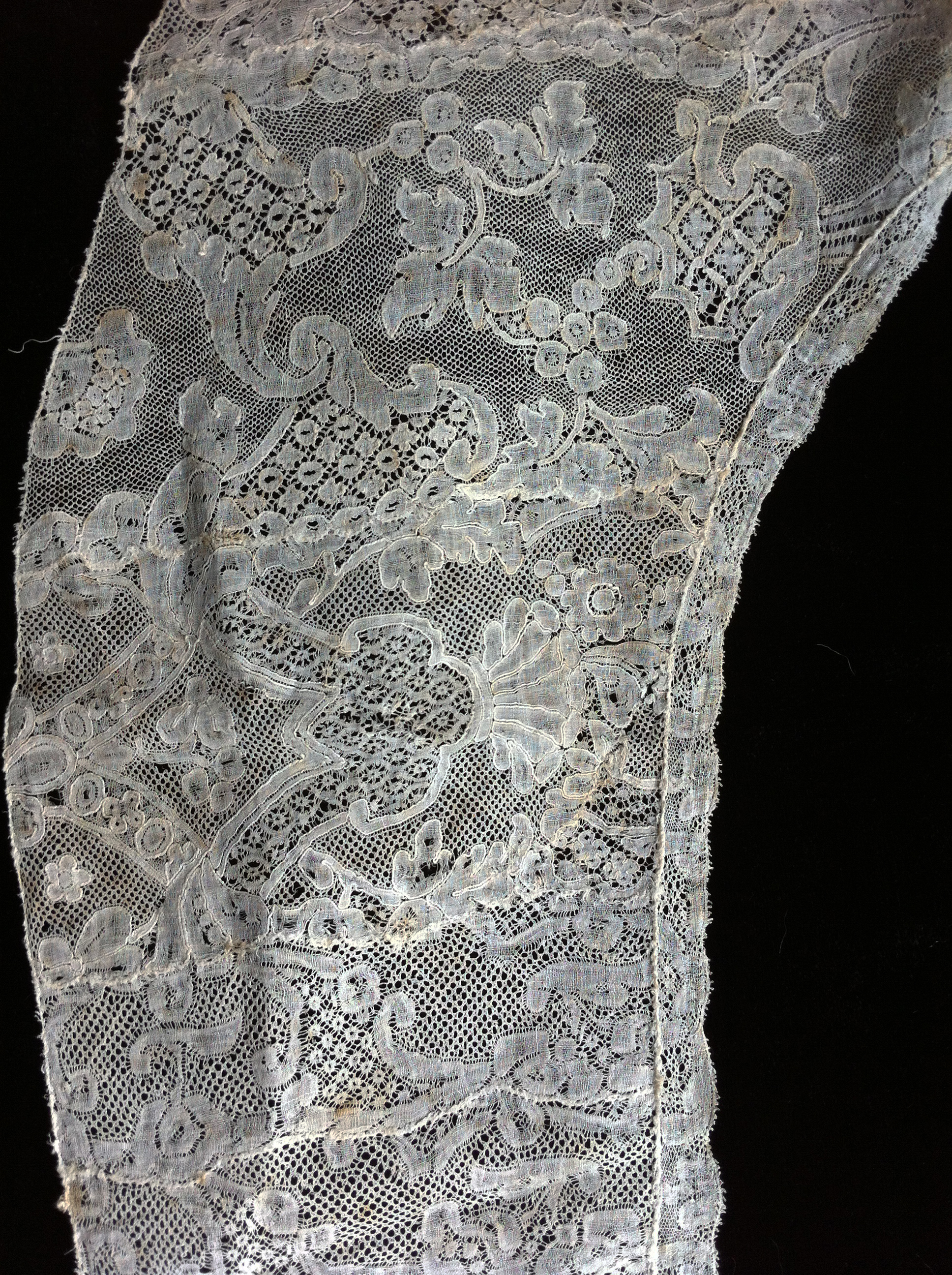 When the lace is as fine as this, with such a dense pattern, it is the first thing I want to look at. How was it made, and how old is the lace? Then I want to know more about the piece it was made into.