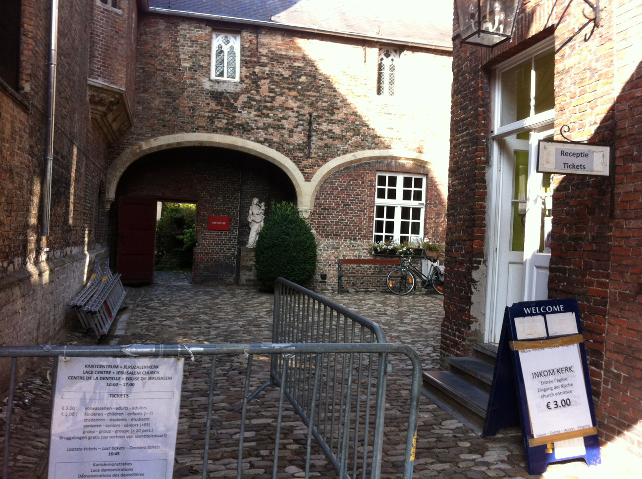 The Kantcentrum is a rather confusing small cluster of buildings that includes a small side building where a very modest entrance fee is collected, a small church, the rooms of the lace school itself, and the separate lace museum. All the directional signs are a little subtle for brain-dead tourists like I was at that moment.