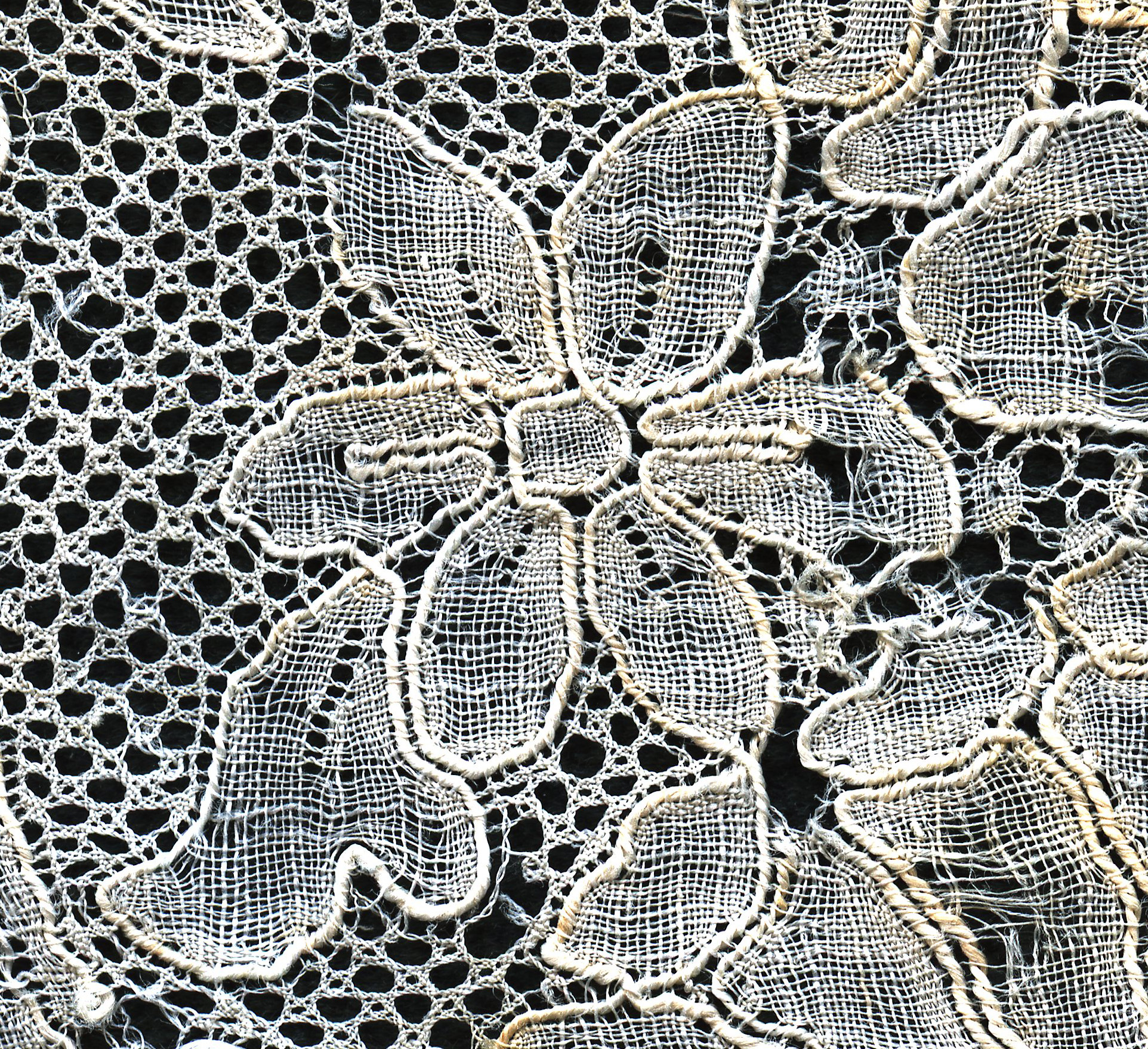 This one is in a Mechlin rather than a cinq trous (five-hole) mesh.